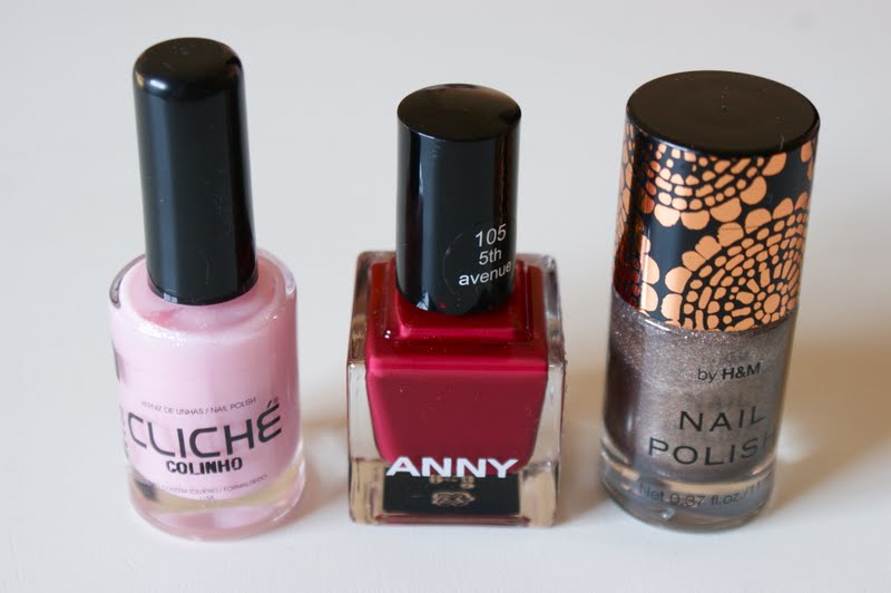 Vermelho cherry da Anny, para mim, fica perfeito com qualquer outfit e o dourado brilhante da H&M é óptimo para peles mais bronzeadas, parece quase um bronze, o que infelizmente não é muito bom para o meu tom de pele, que é muito claro!