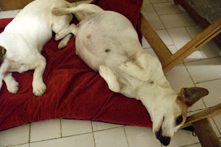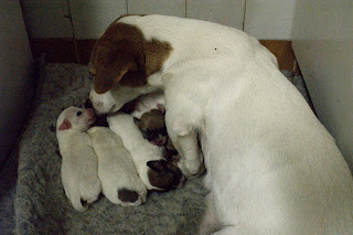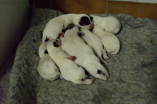 A semana passada voltamos a visitar os nossos sobrinhos e descobrimos oito coisinhas lindas, perfeitinhas, cheios de saúde e genica. Não sabemos se os donos vão ficar com algum, já que têm a casa cheia de cães, mas sabemos que estão para venda, são lindos e puros puros puros Jack Russels!